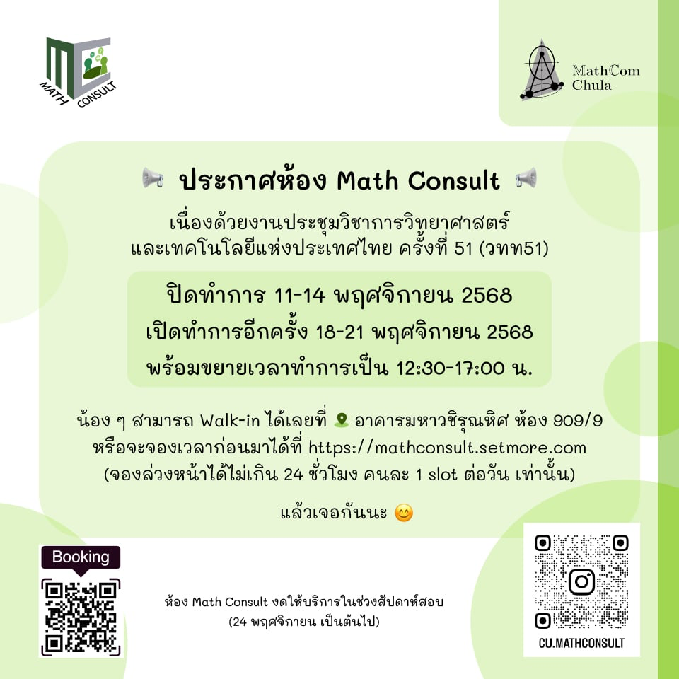 ประชาสัมพันธ์โครงการ Math Consult สำหรับภาคต้น 2568...
